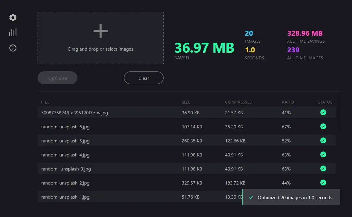 Optimus é uma aplicação de otimização de imagem para área de trabalho. Ele suporta conversão e compressão entre formatos de imagem WebP, JPEG e PNG.